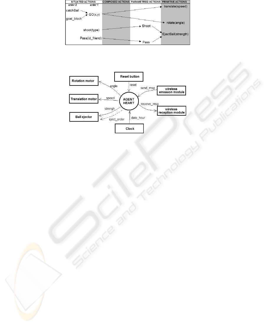 occurs. The ball (physical actor) moves under the robot actions. The opposing team