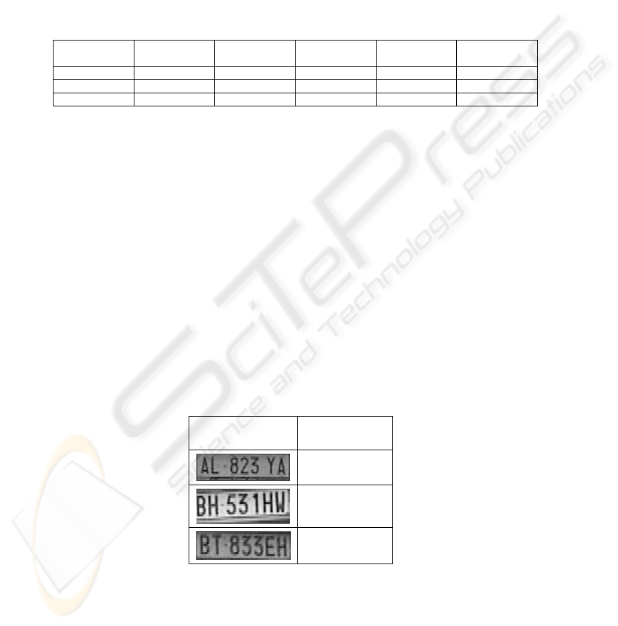standard values of all the three features, defined for each car plate type, are compared