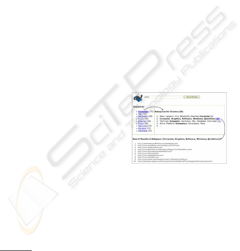 SCUBA DIVER: SUBSPACE CLUSTERING OF WEB SEARCH RESULTS