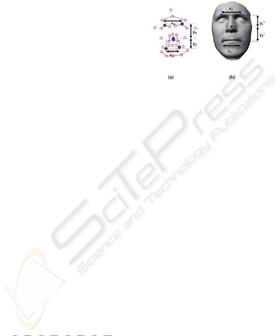 between the database of laser captured faces and the