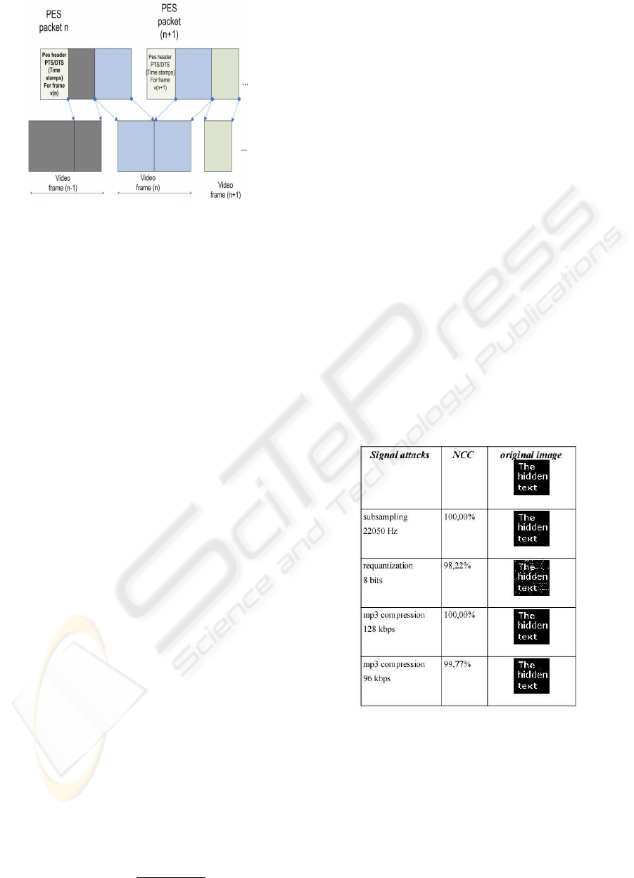 single bit is hidden in a short audio block. So in this