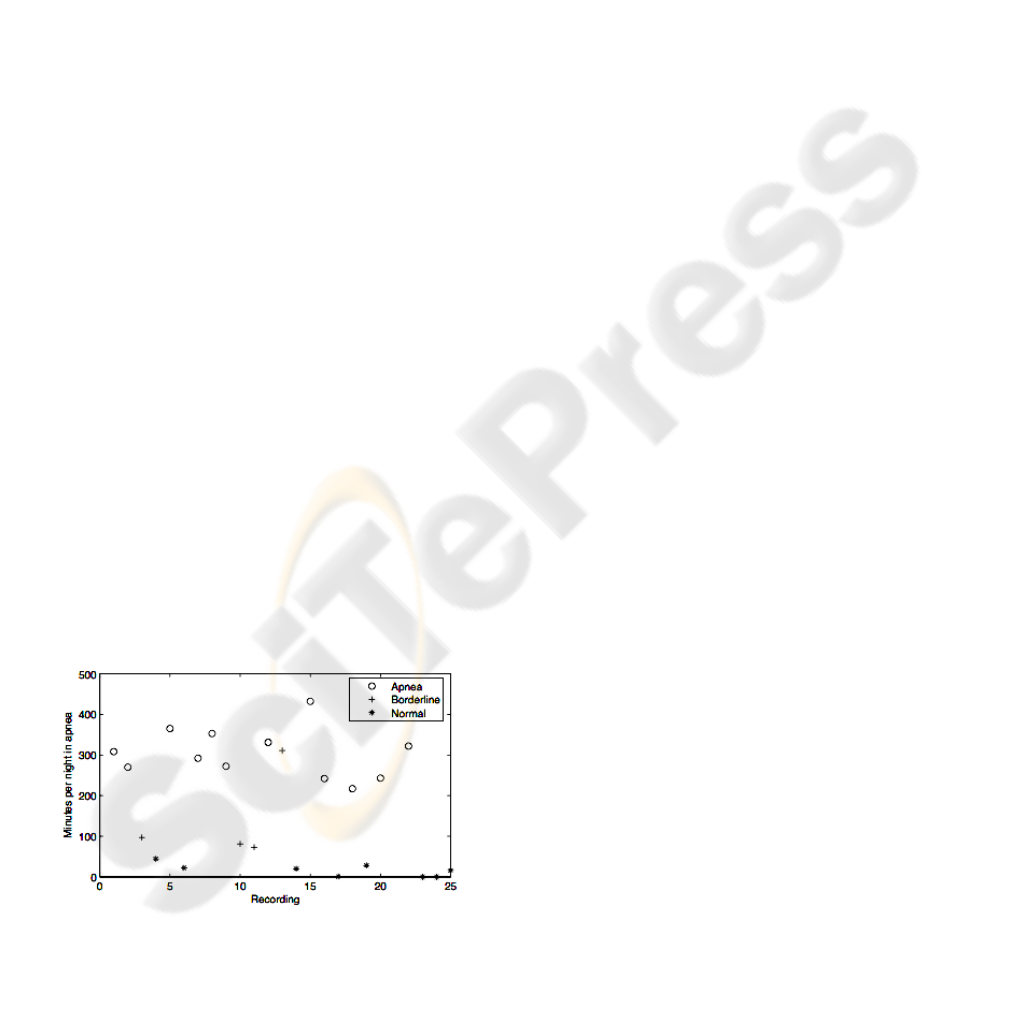 sleep apnoea classification for 25 subjects.