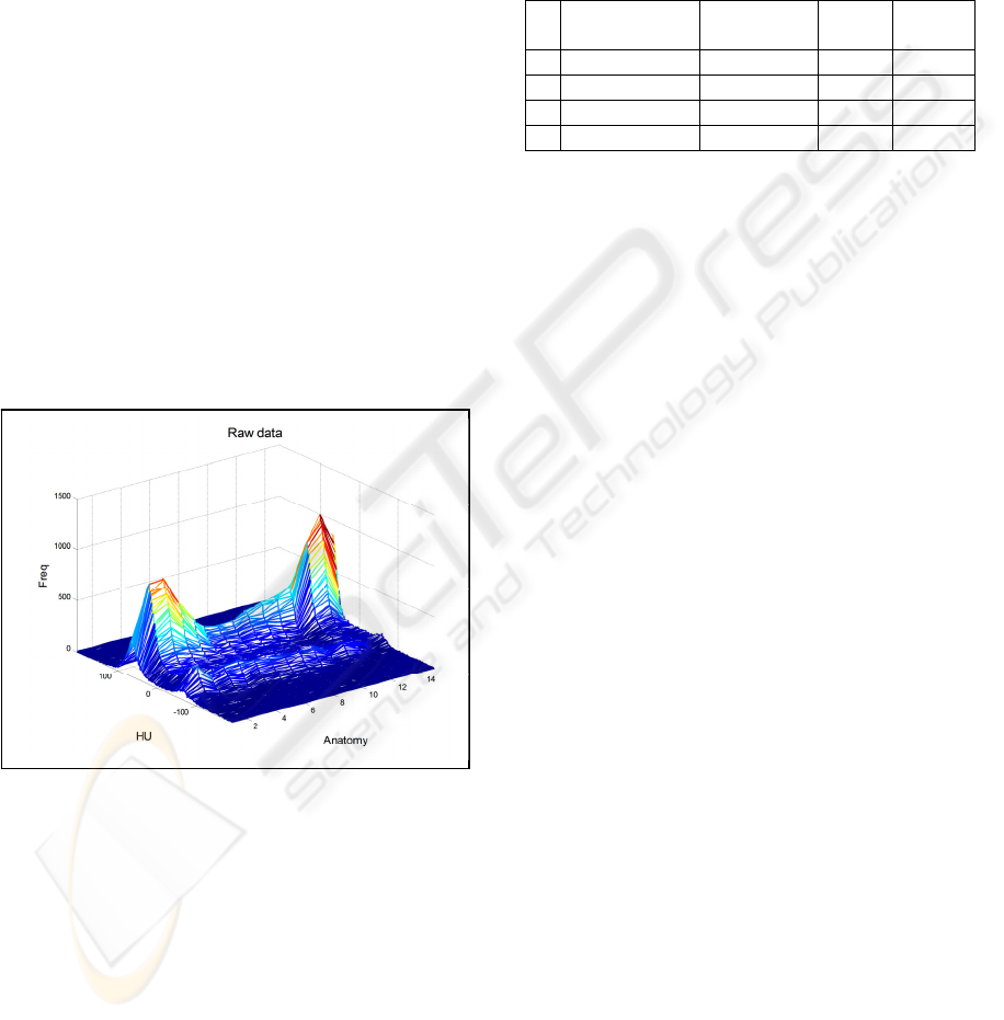 3D frequency distribution of the CT images, and