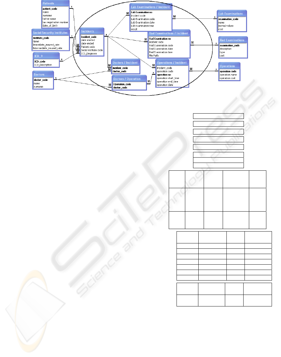 relational database schema of the integrated HIS
