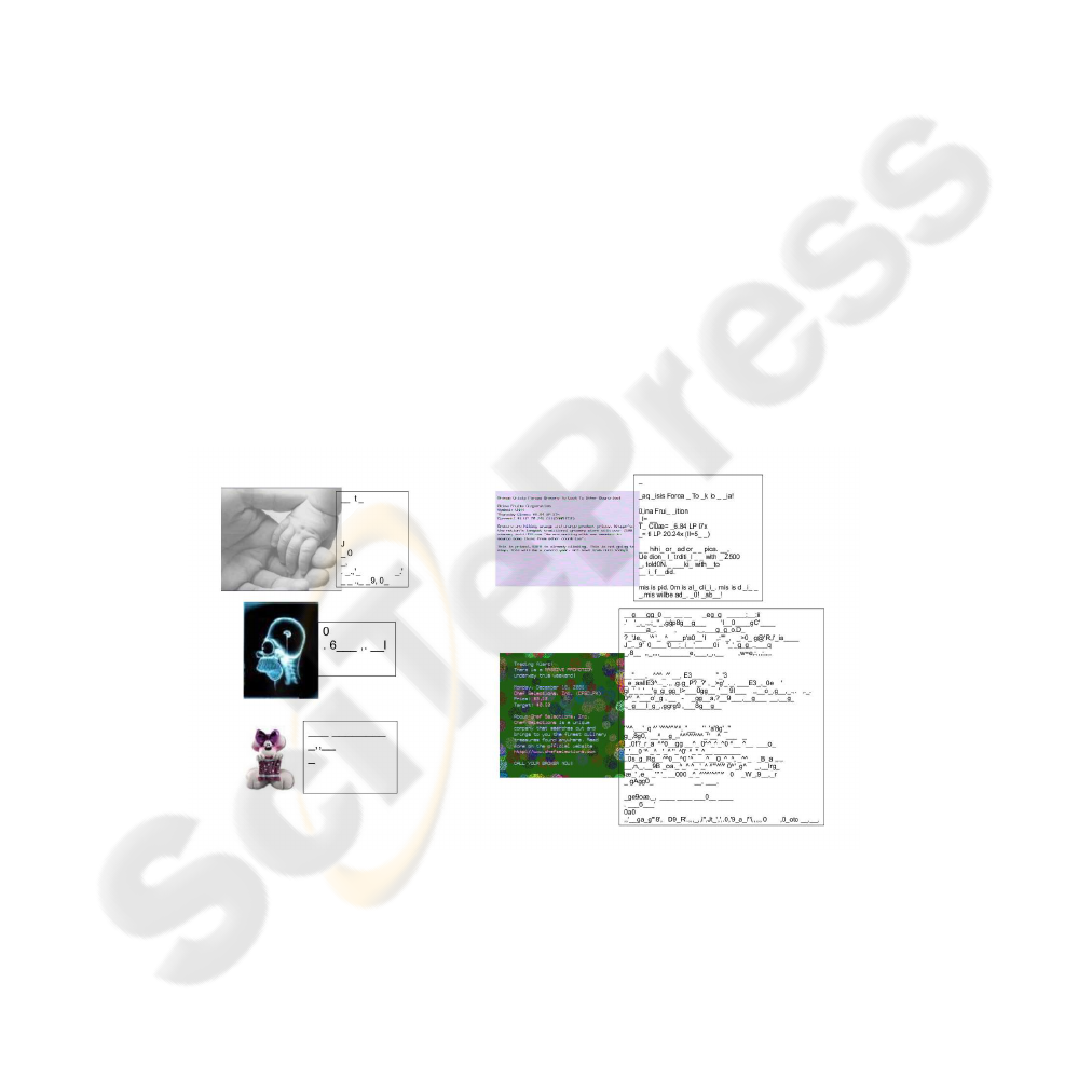 ages is voluntarily distorted and/or obfuscated. As it was noted in [3], in fact, now spam-