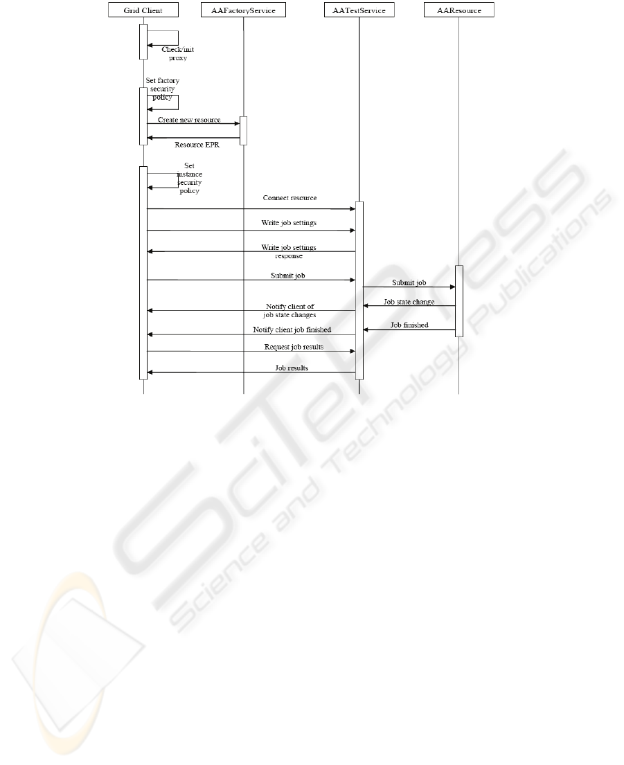 interaction with several grid services delivered with Globus Toolkit 4 middleware