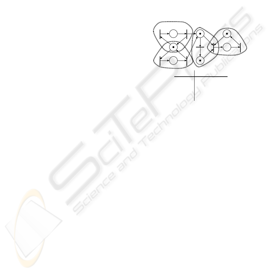 portion is encoded into a conventional Petri net. The
