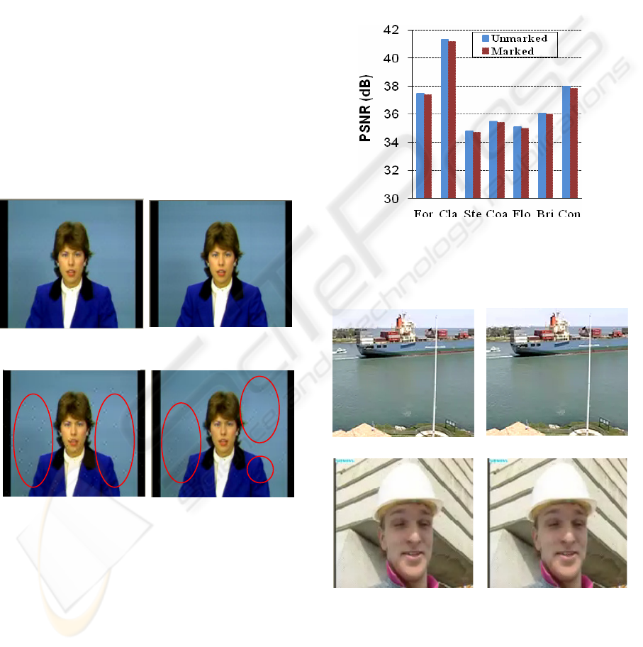 respectively. The quality degradation is clearly