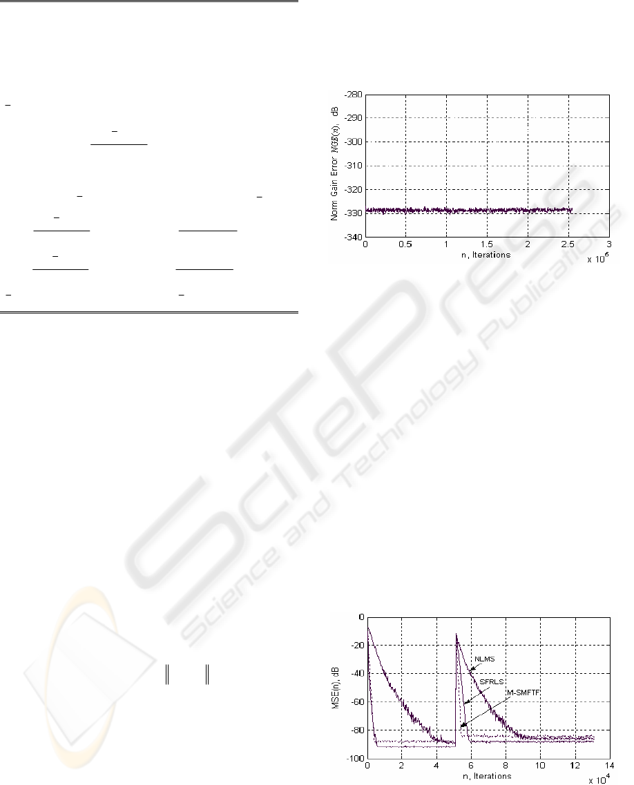than those of NLMS algorithm. The M-SMFTF