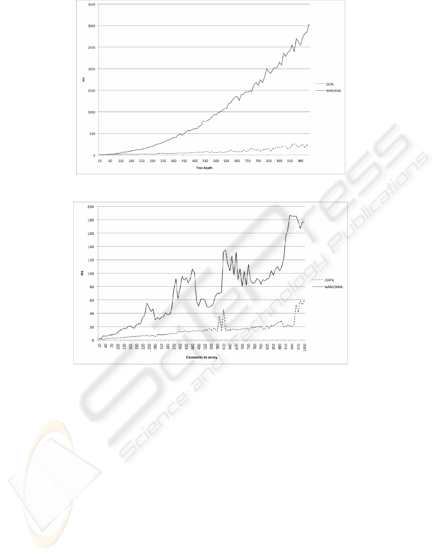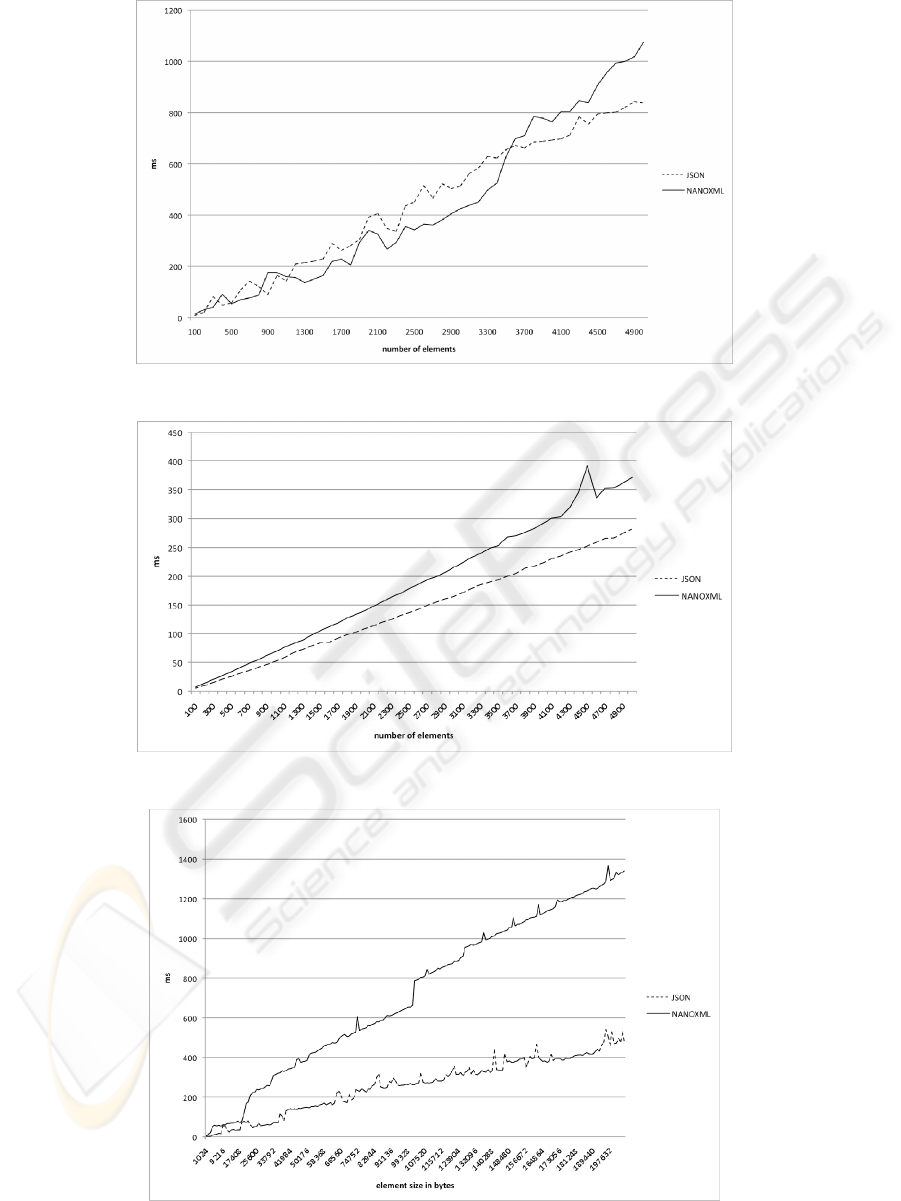 The graphs show that in this case, JSON also scales