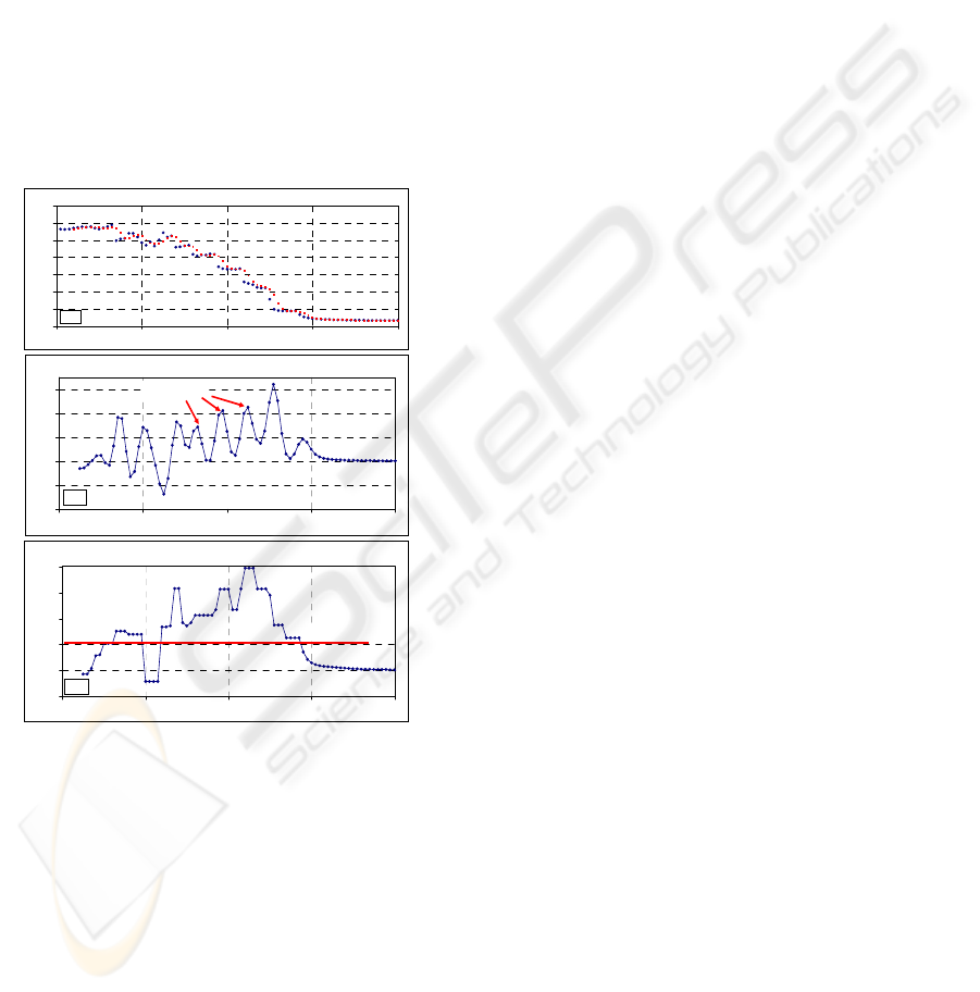 decreases abruptly and then some stagnation phases,
