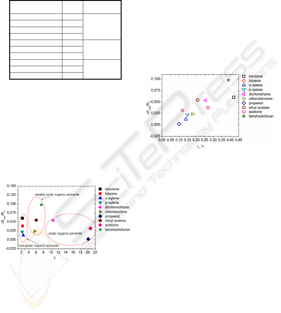 resistance changes of the composite in presence of 10 different saturated organic solvents vapour were