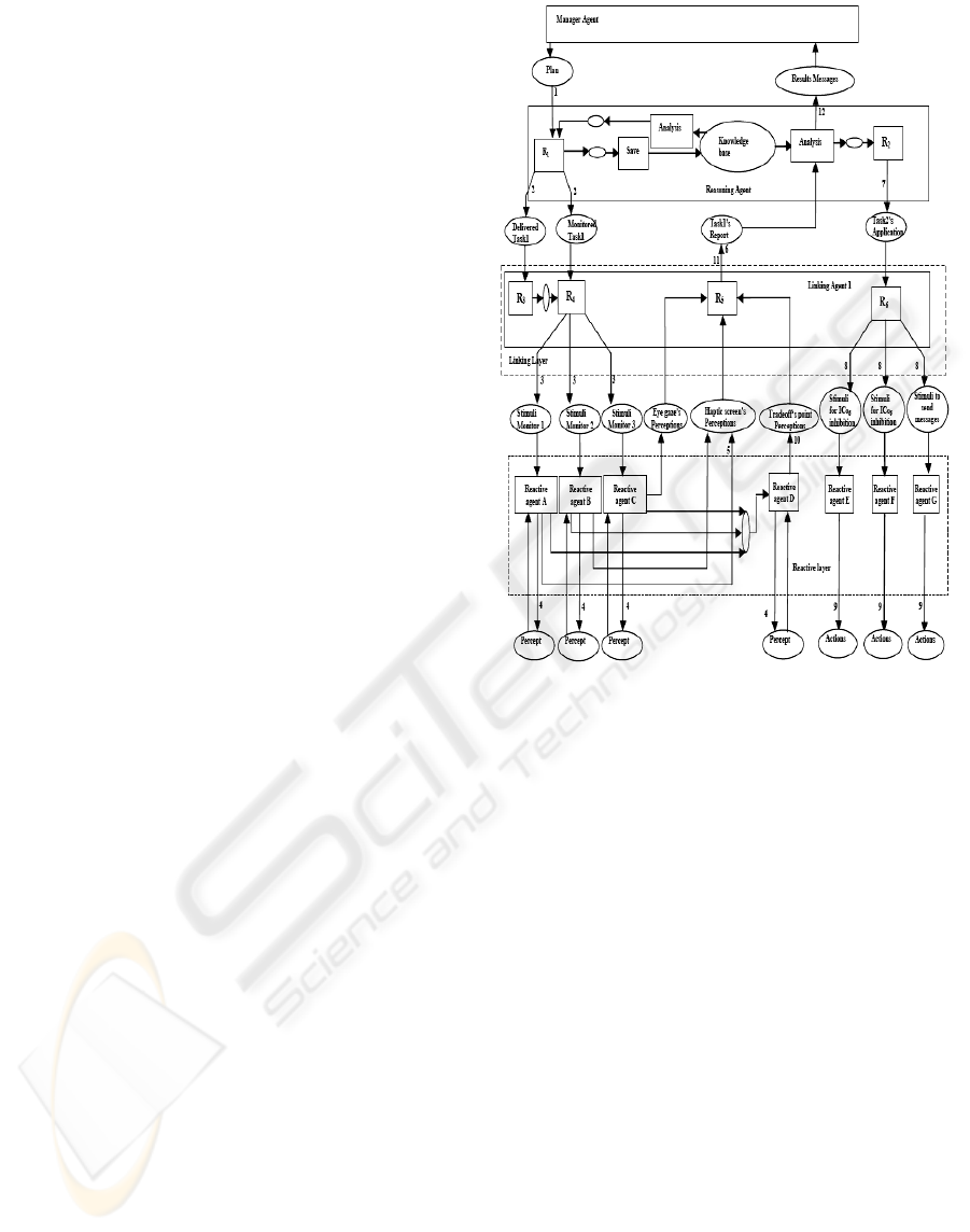 reactive agents (Agents E, F and G) (step 9). The