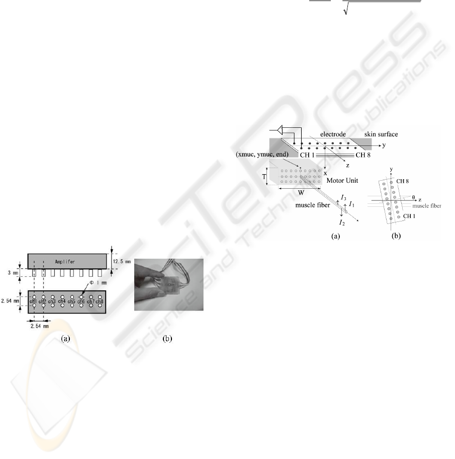 axis of the eight-channel electrode was perpendicu-