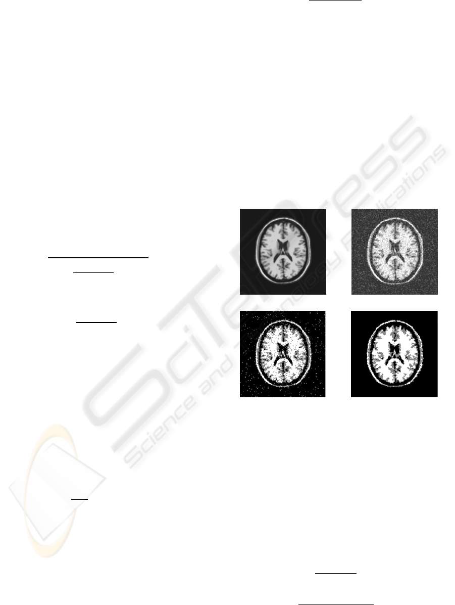 Figure 3: (a) MR image with additive noise. Segmented
