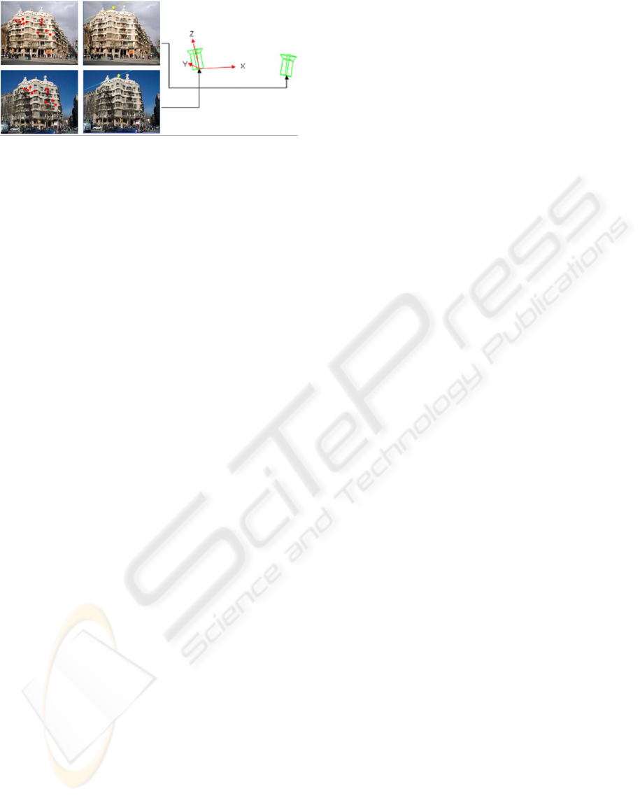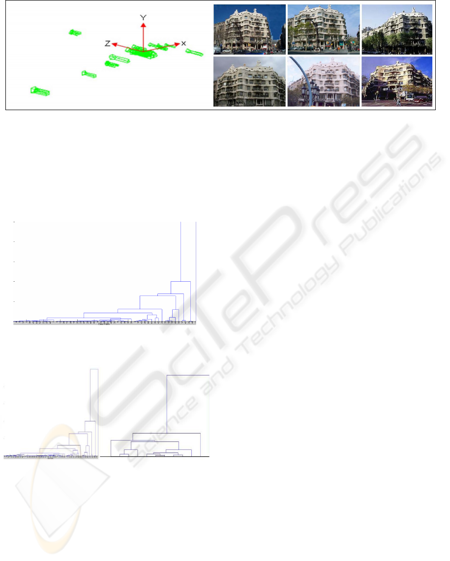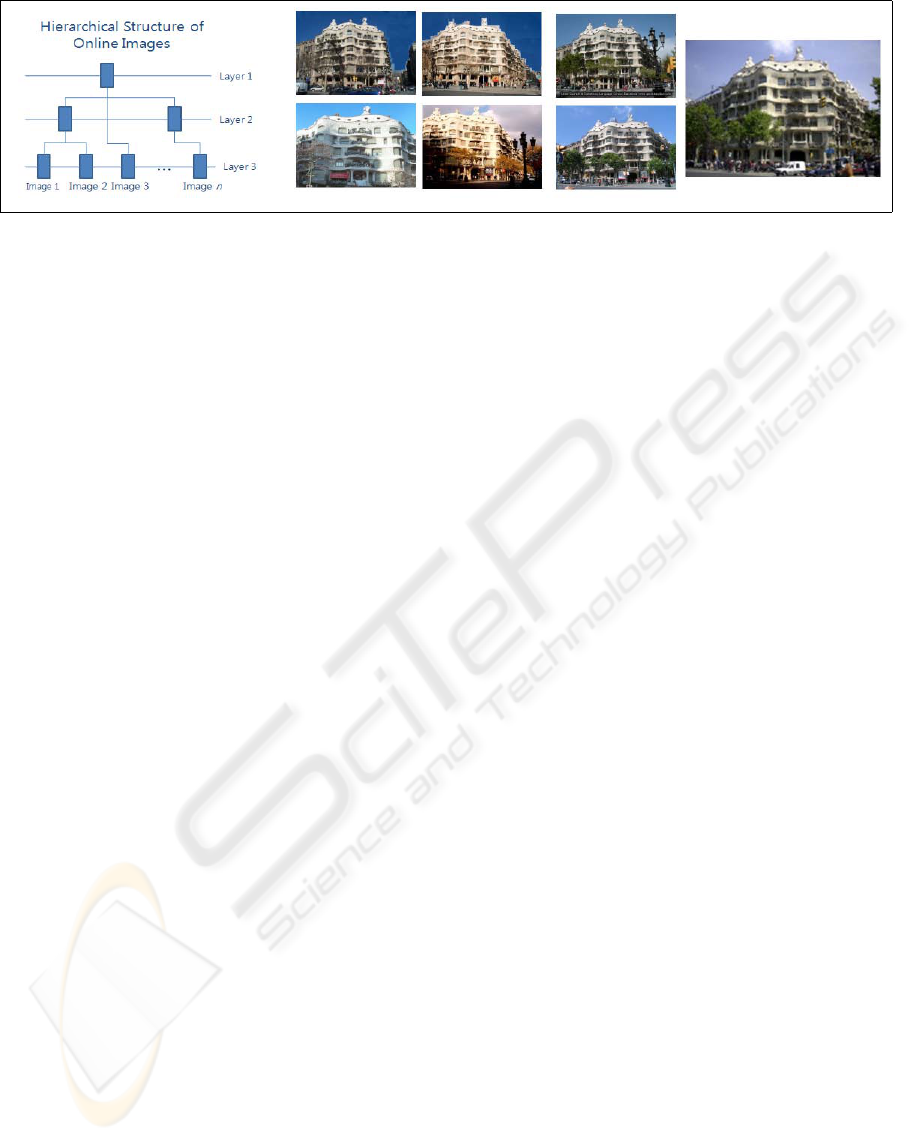 Figure 7: (a) Some representative images in the hierarchical structure of online images and recovery of 3D camera’s extrinsic