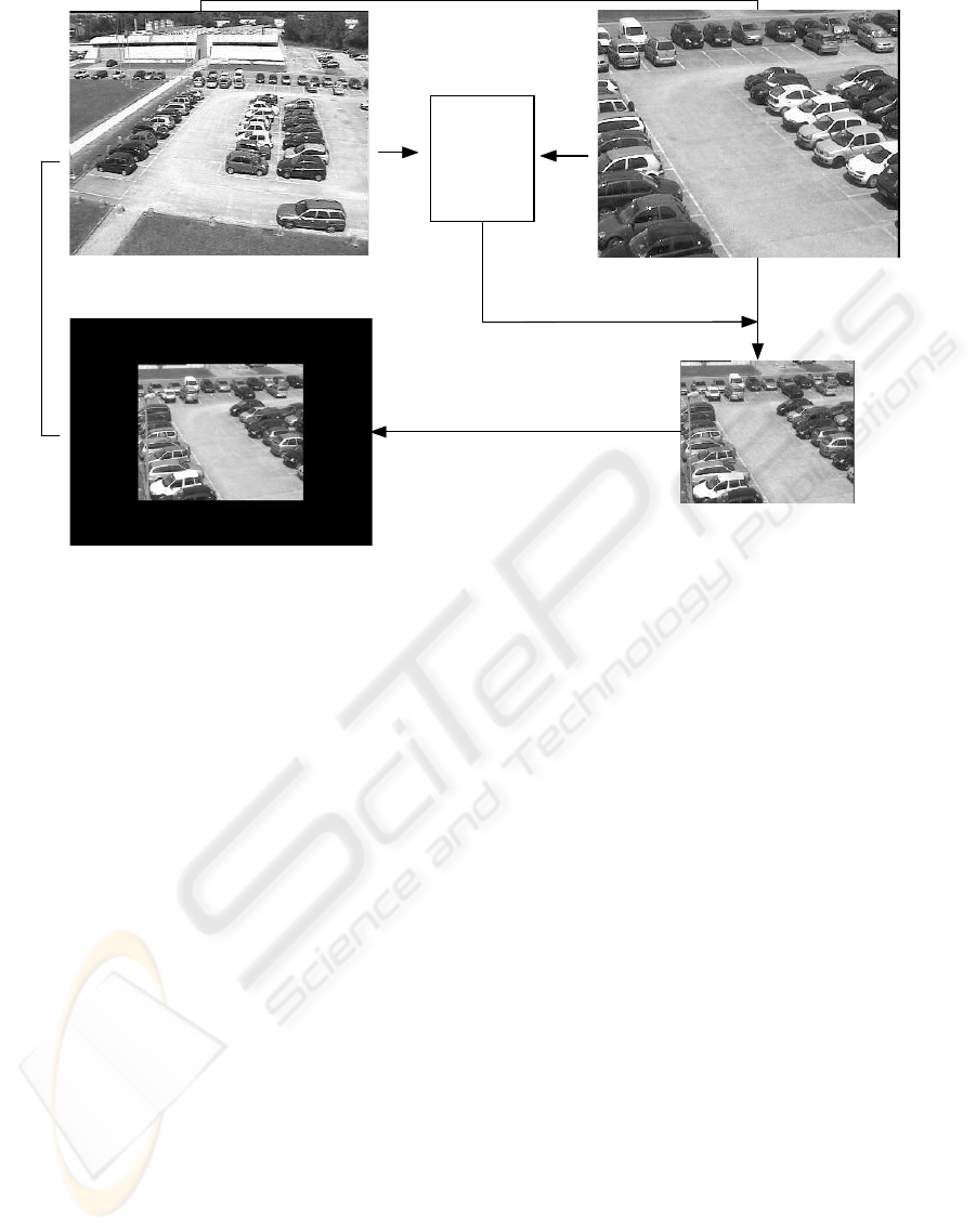 image captured by the PTZ camera is shrunk by a fac-
