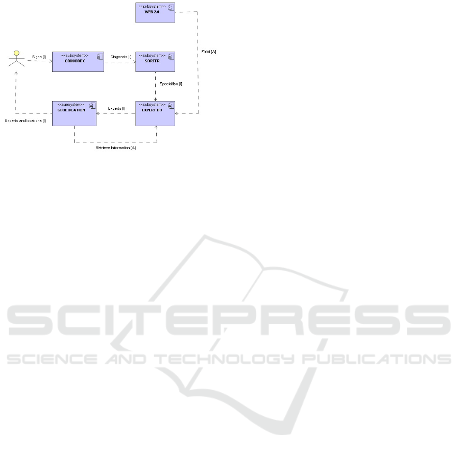 communicates with the database of experts to obtain