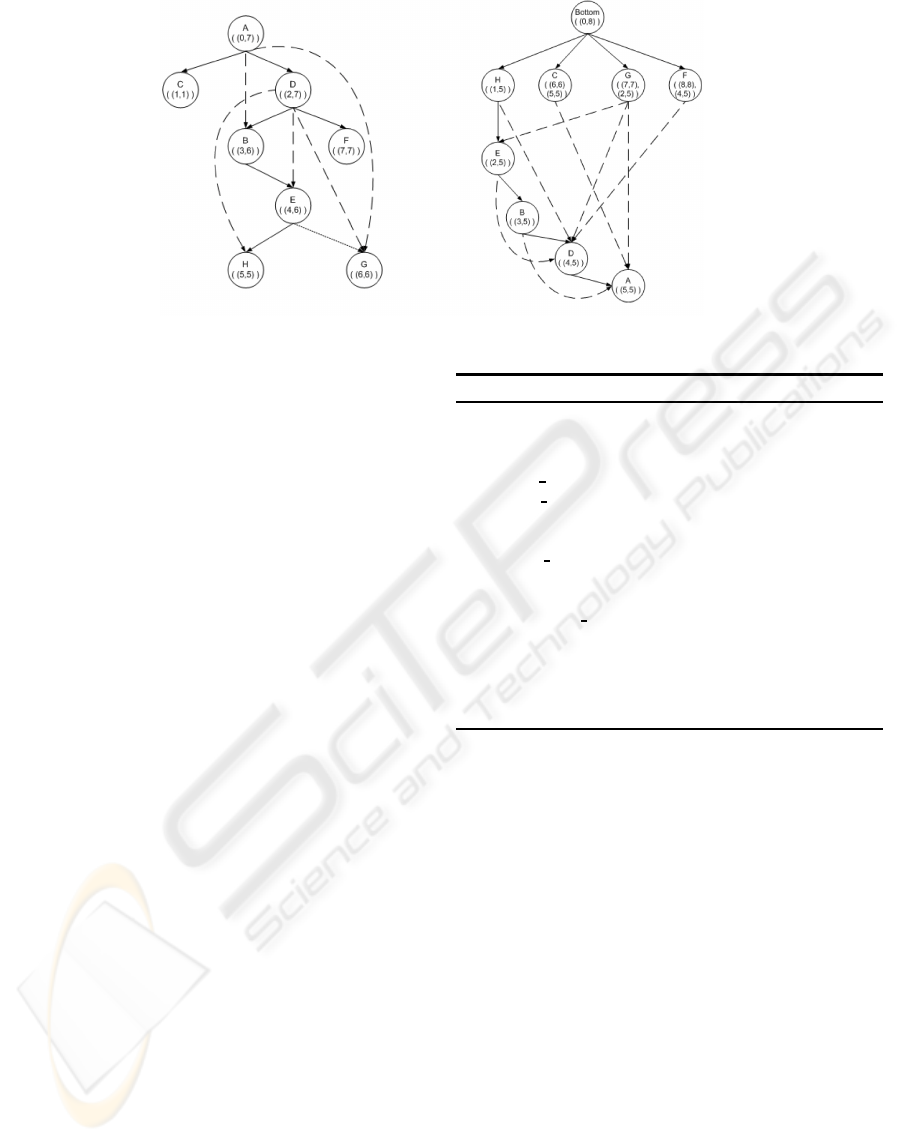 cal traversal, node d inherits intervals [6, 6], [4, 6] and