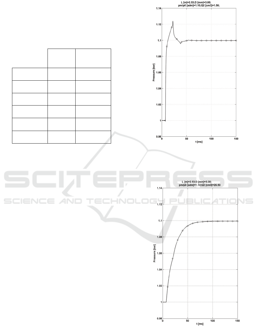 Table 2: Simulated Pressure with L=2.53 m, D=3 mm,