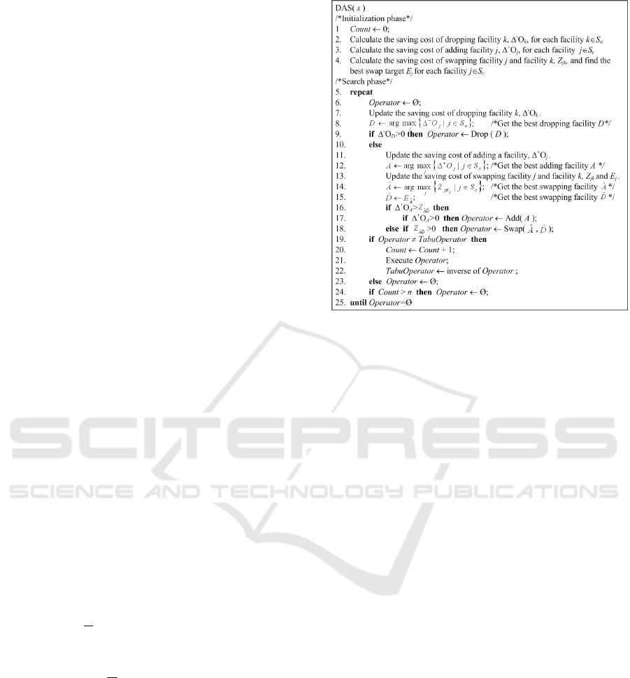UFLP. The DAS heuristic utilizes three operations: