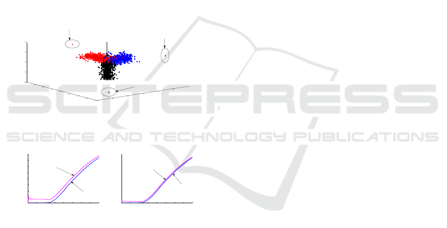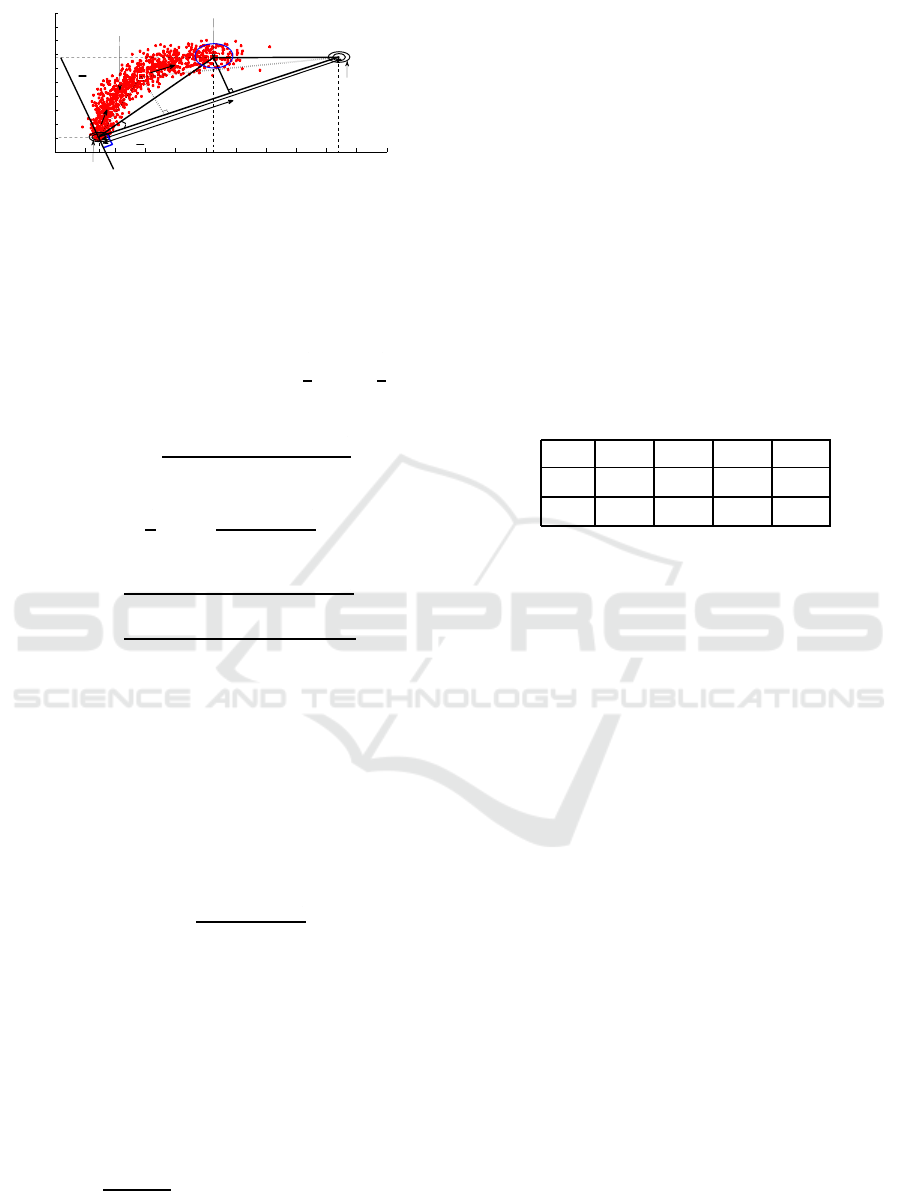 of each class (center and covariance matrix).