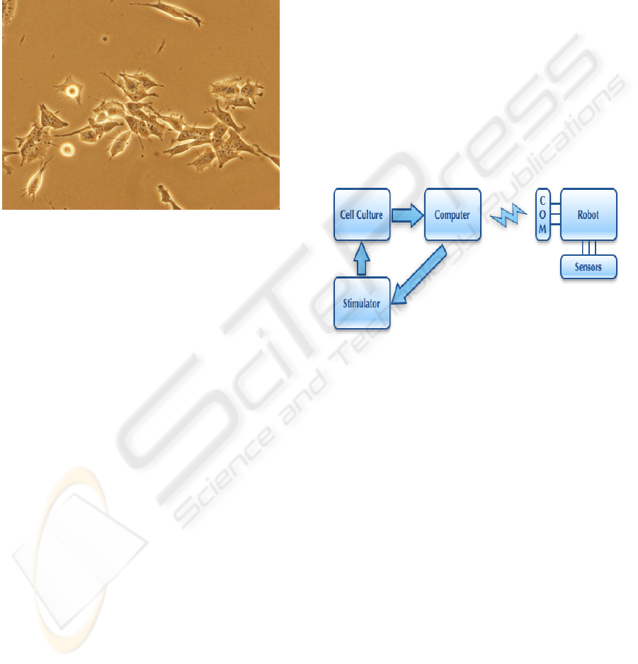 cultured cells for controlling a robot. Multielectrode