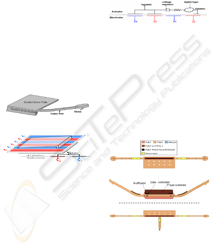 LOW-VOLTAGE SCRATCH-DRIVE MICRO-SCALPELS CONTROLLED BY A BINARY-ENCODED SIGNAL