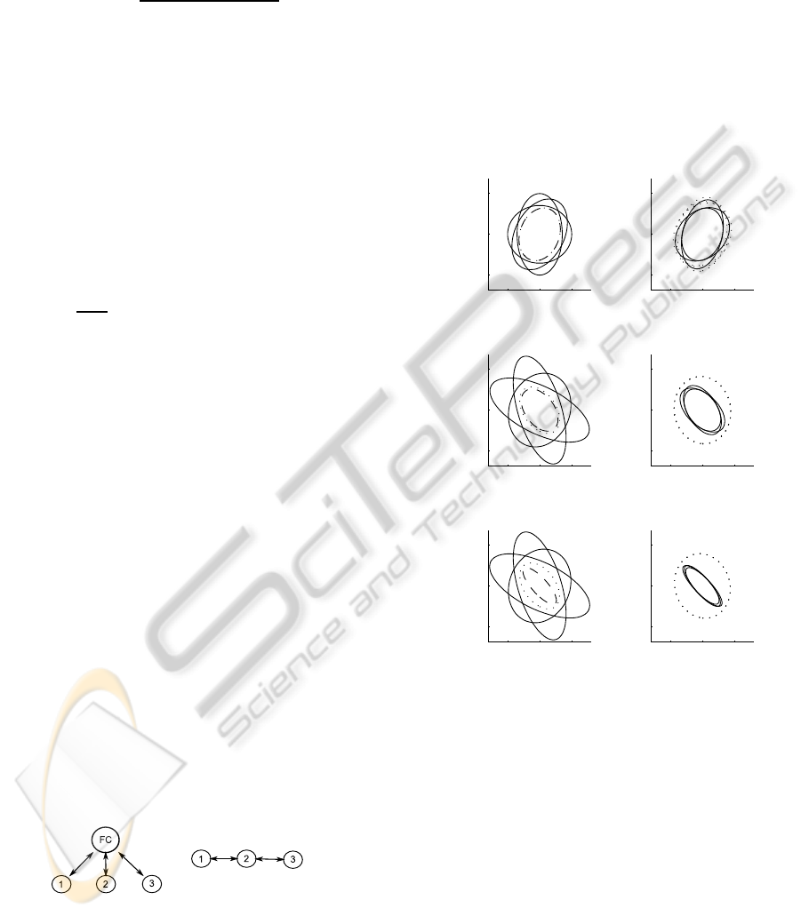 the Covariance Intersection fusion (dotted lines). The