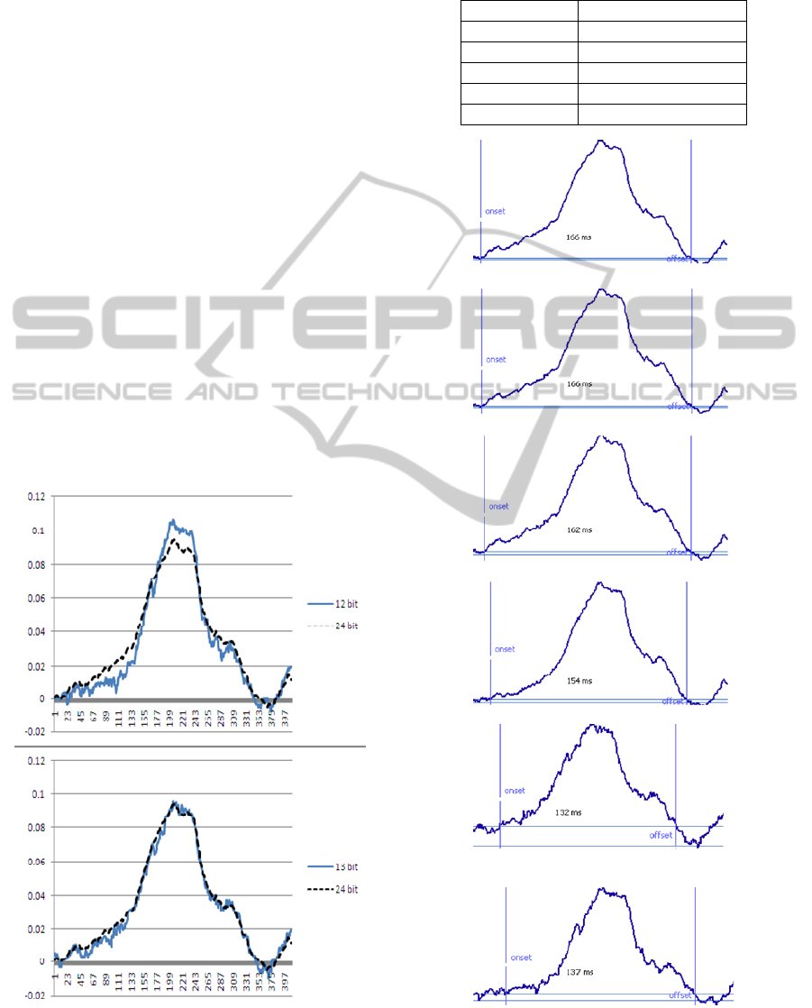 13 and 12 bit). We found that, when LSB is of the order of 128 µV (12 bit), a single P-wave is not