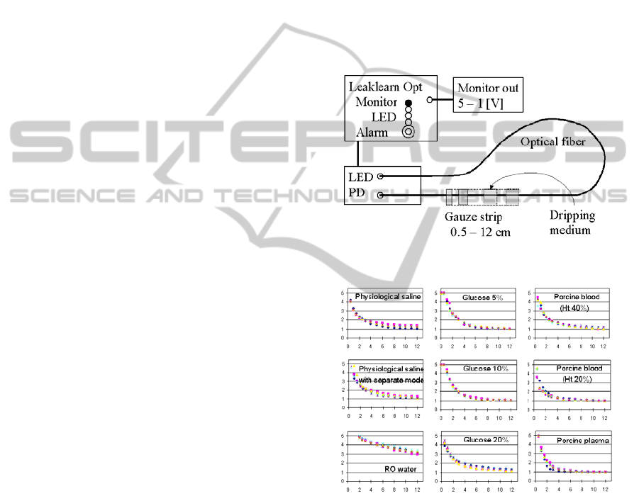 soaking the fiber with various liquids and porcine blood on light-loss experimental settings. Light intensity