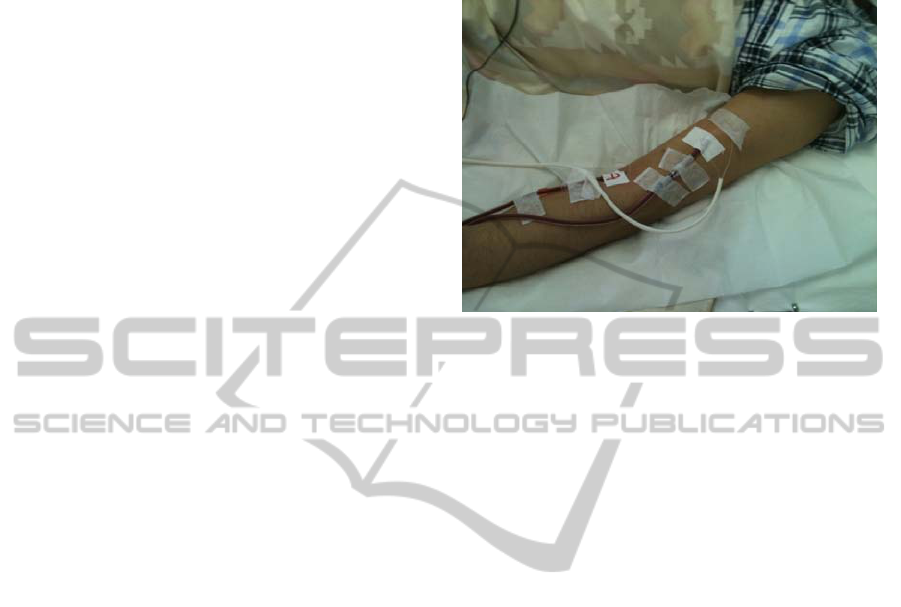 Abstract: Large amounts of undetected blood loss during hemodialysis are caused by venous needle dislodgement. A
