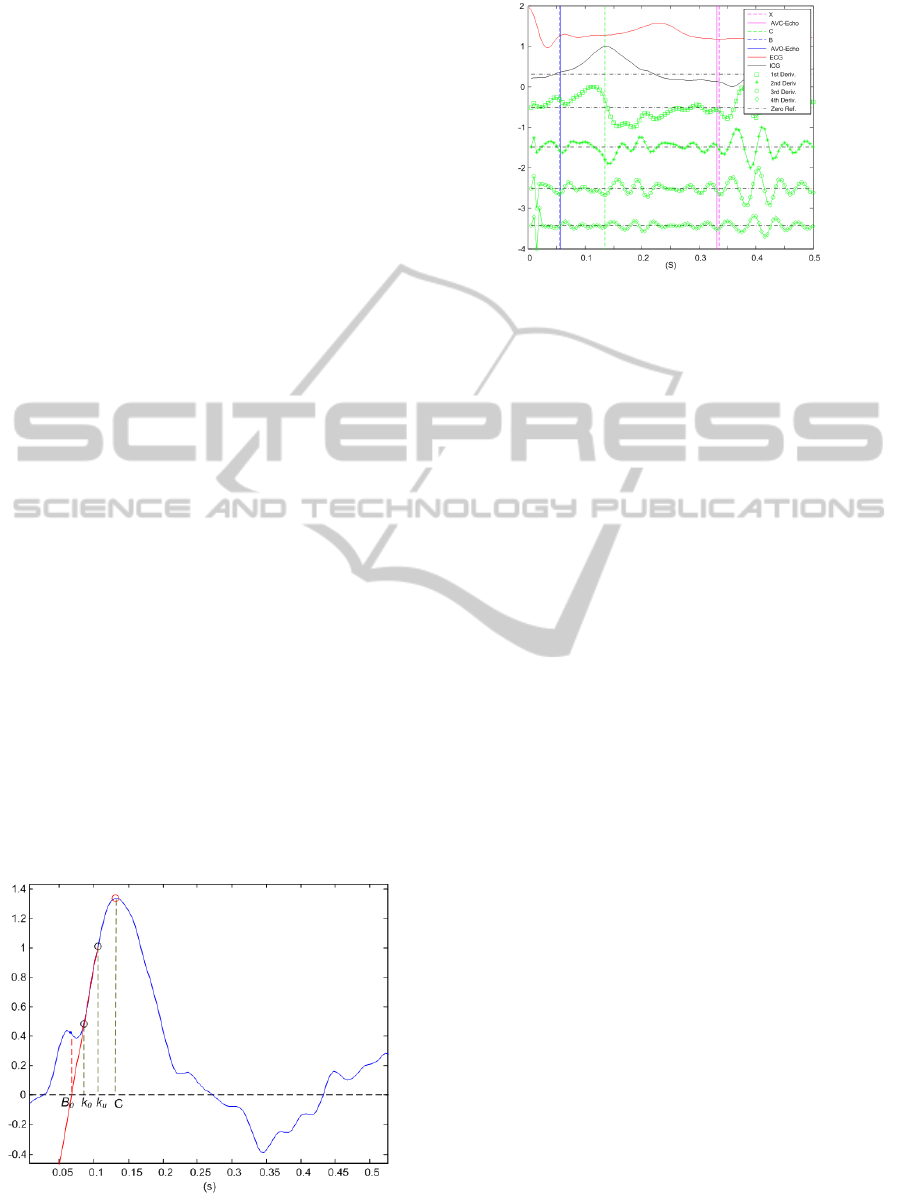 of the aortic valve opening event at the zero-crossing