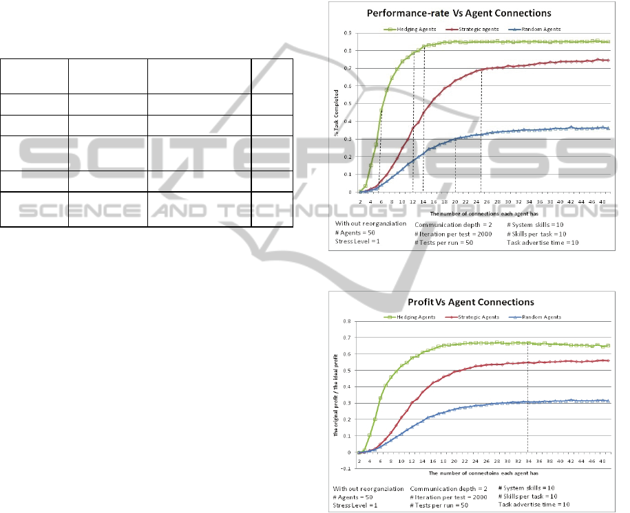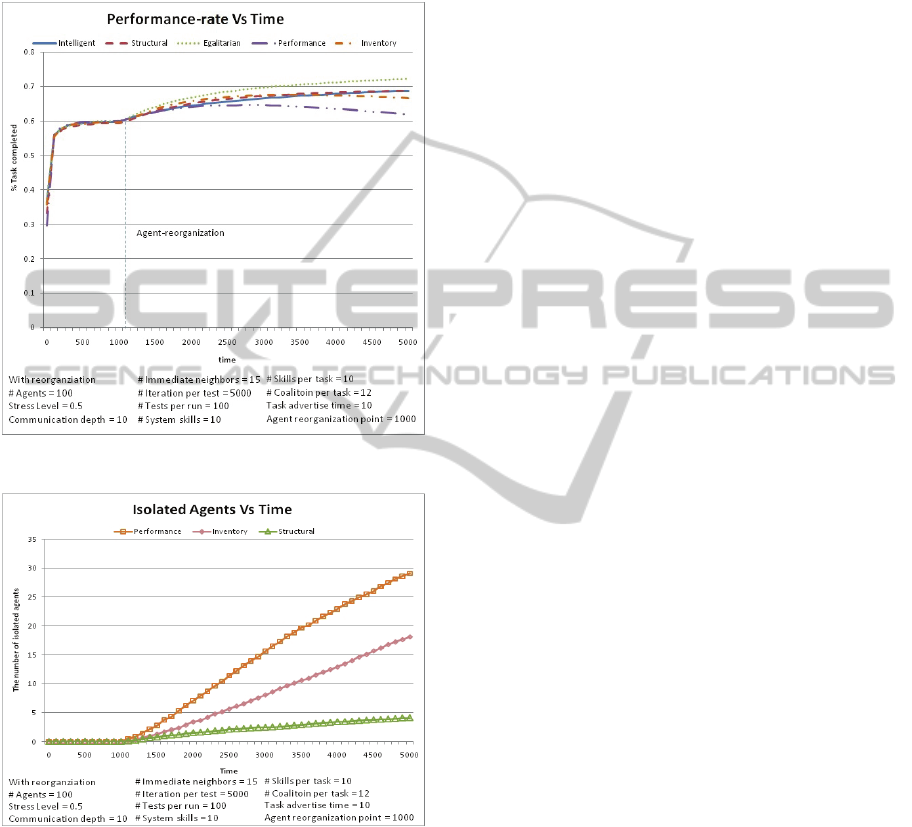 egalitarian, intelligent and inventory reorganization are compared with agents employing structural and