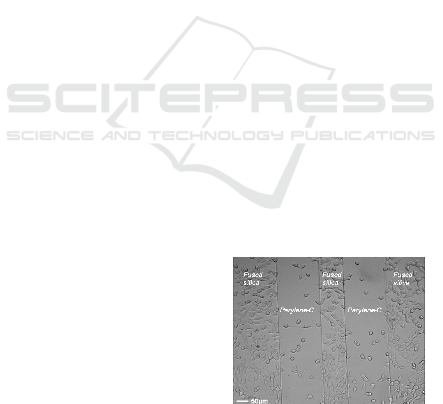 spaced every 2μm) of parylene-C is performed on a