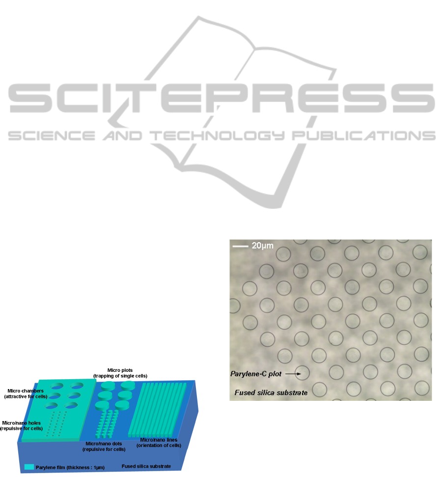 micro-patterned parylene film on fused silica