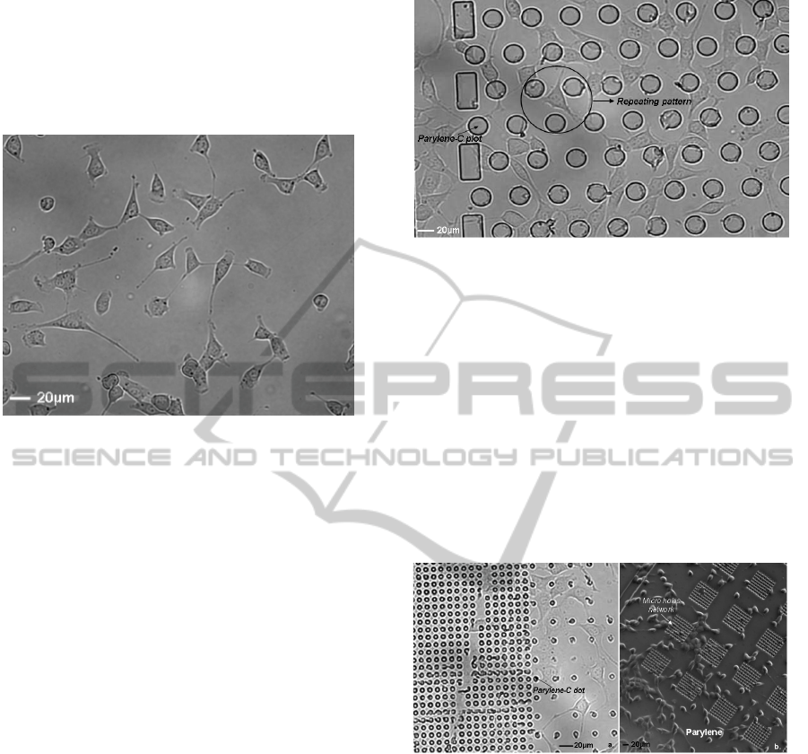 right side of the images the cells cultured on a plain silica