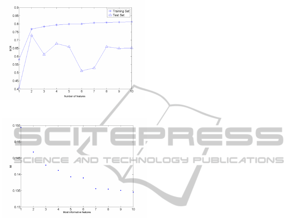 the weighted SVM classifier and the MI criteria to