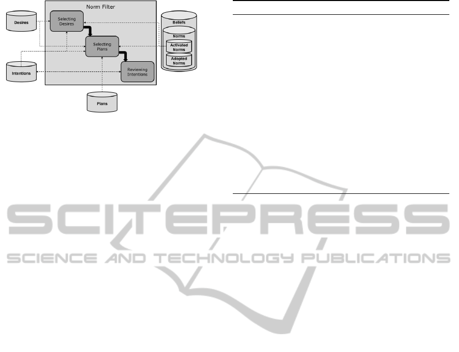 effects of norms on the agent desires, it does not con-