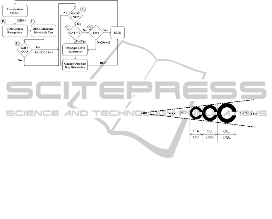 gesture recognition module and presented optotype