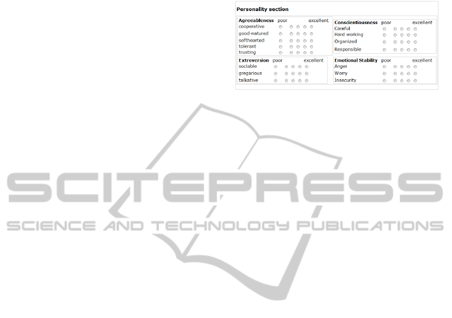 personality criteria while the experience and the