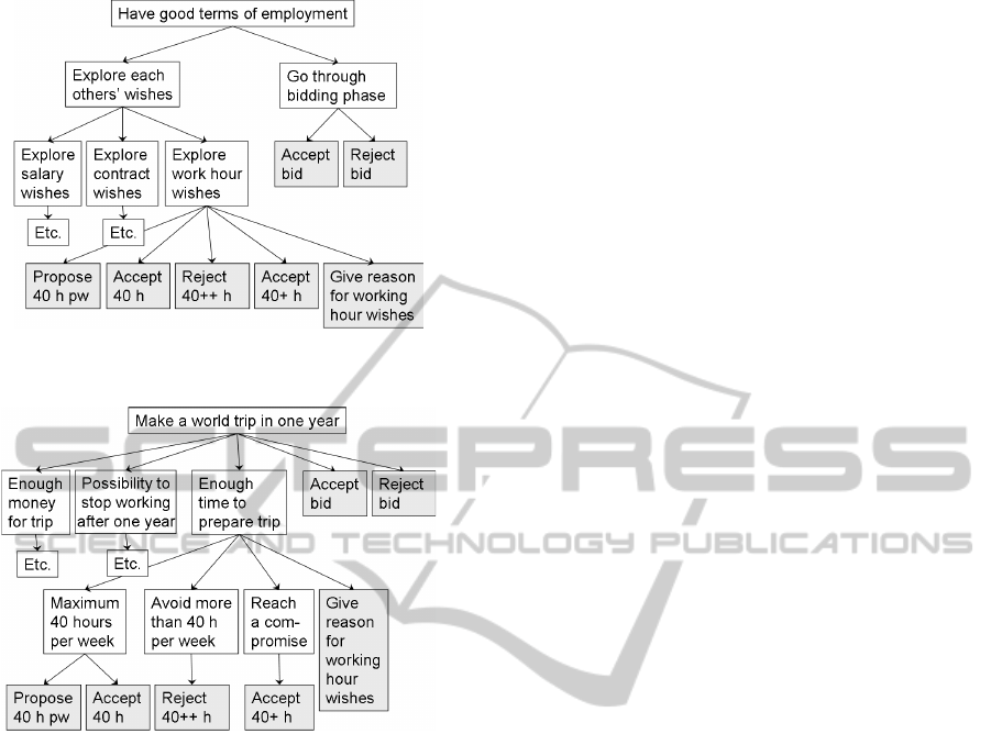 ployee agent, modeled as a goal hierarchy. Note that