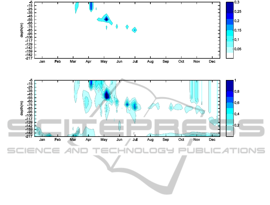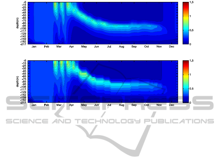 distribution at 9 depth levels. These vertical