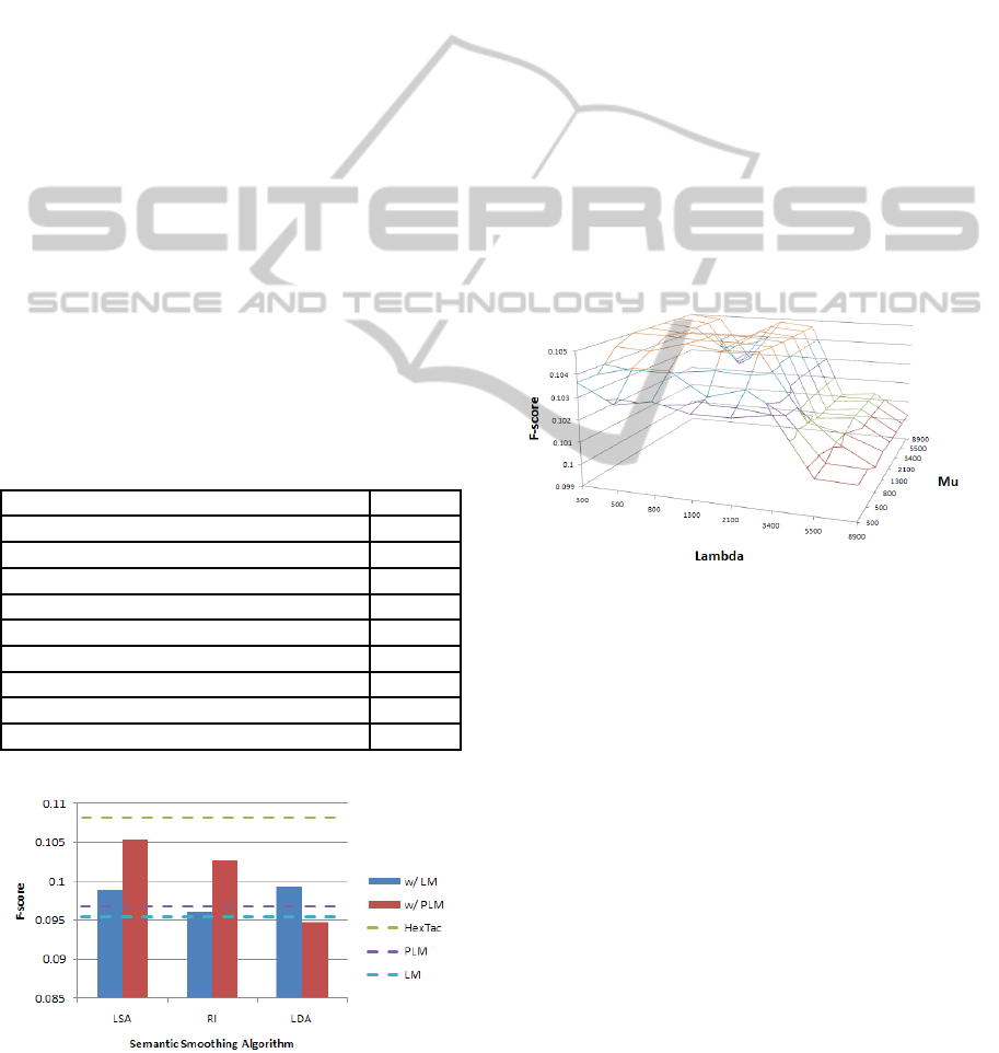 tic smoothing. Thus, employing random indexing in-