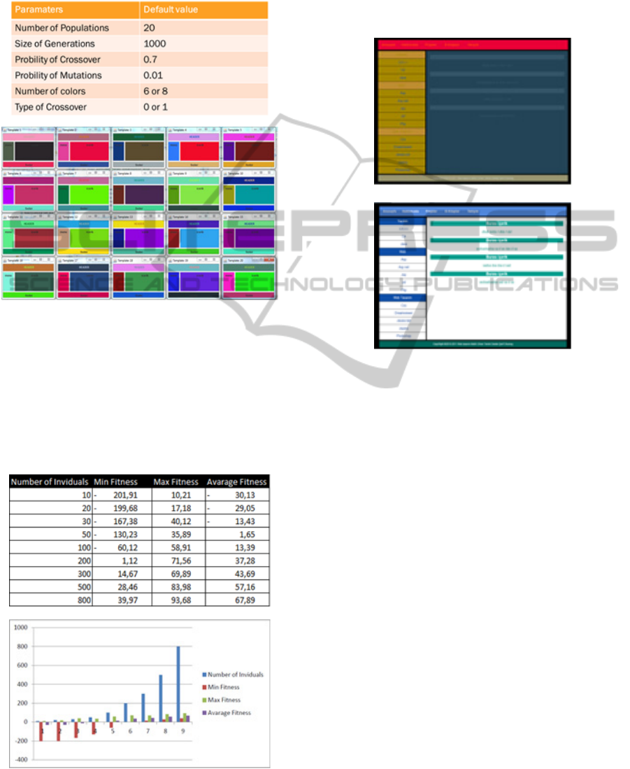 approach uses a genetic algorithm. The system generates random colors for each web template. All