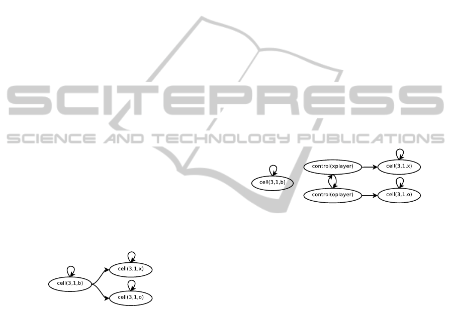 successor state, e.g., cell(M,N,x) holds if xplayer marked