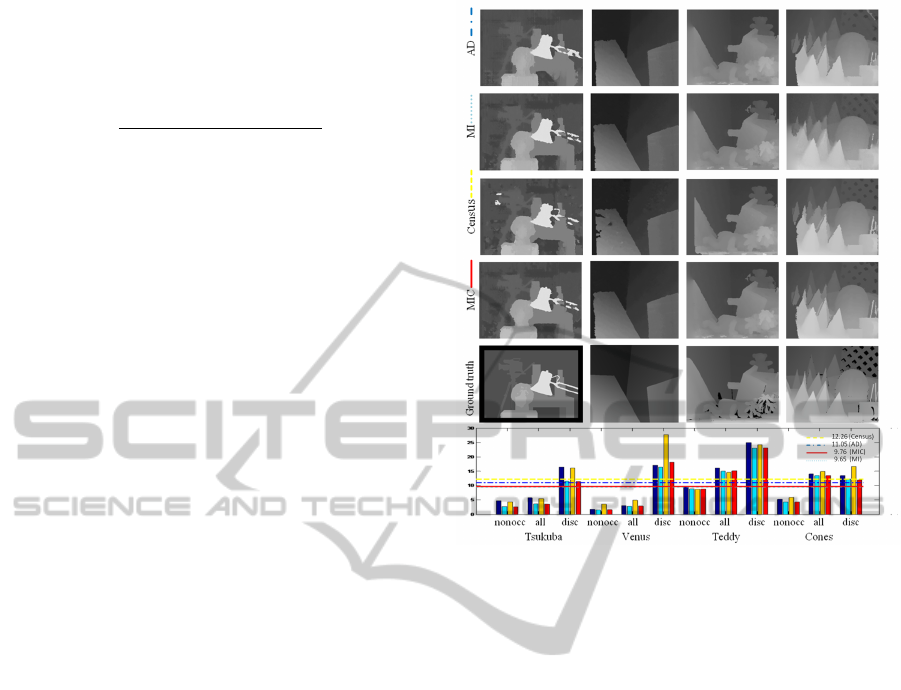 matching costs. In addition, a novel matching cost based on mutual information and Census is introduced