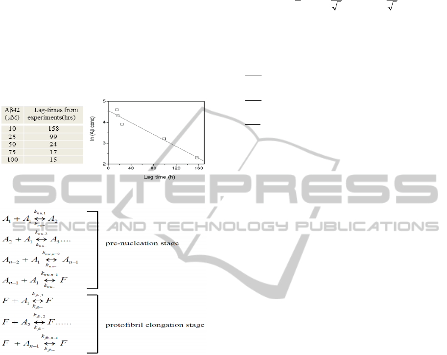 estimate the lag-times and nucleation mass of Aβ42;