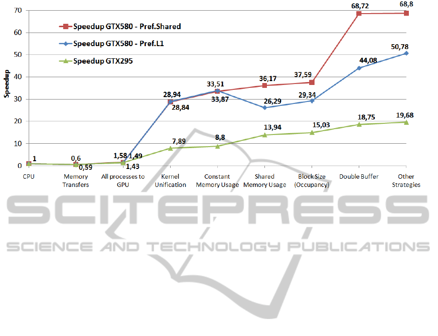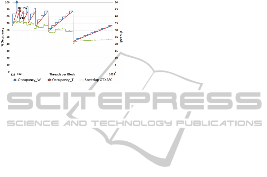is achieved. On the contrary, for the GTX580, the