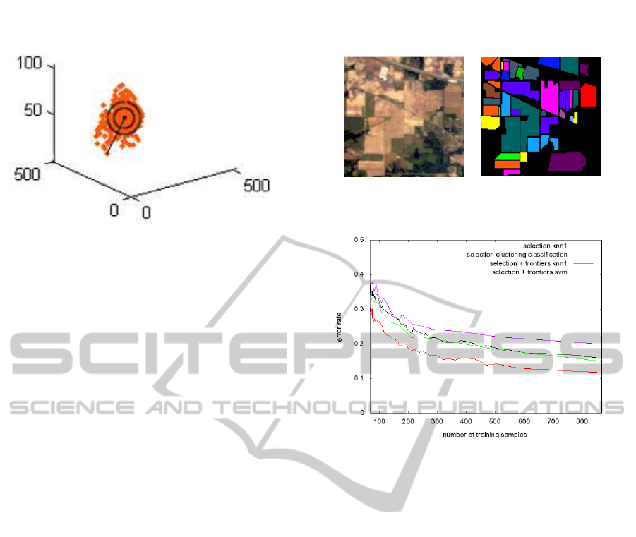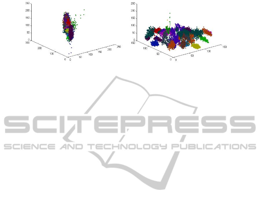 and samples (pixels) are represented as points in that
